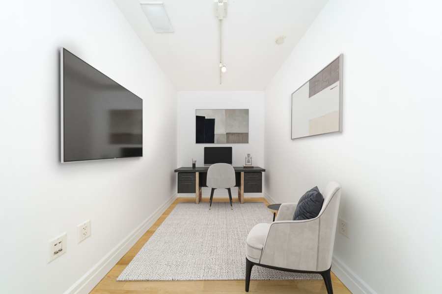 This luxury 1 bedroom, 1 bathroom unit with a home office that can be flexed into a 2 bedroom, located in the heart of Midtown West, is a true one of a kind! As you enter, you are immediately struck by the spacious living area and city views. The apartment is elegantly designed with high-end finishes and top-of-the-line appliances. The modern kitchen is a chef’s dream, featuring top-of-the-line stainless steel appliances and marble countertops. The king size bedroom is spacious and features ample closet space, while the den can easily accommodate a full-size bedroom set up or serve as a home office.