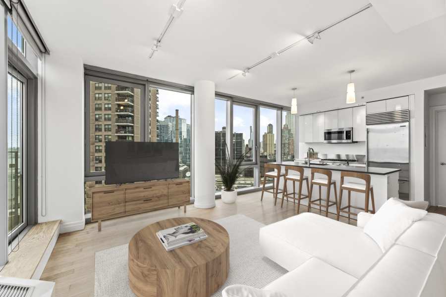 This stunning 2-bedroom, 2-bathroom apartment in Midtown West in New York City is the epitome of luxury living. As you enter, you are immediately struck by the luxurious finishes and modern design of the apartment. The apartment is elegantly designed with high-end finishes and top-of-the-line appliances. The spacious living room boasts floor-to-ceiling windows that offer breathtaking views of the city skyline and gorgeous water views of the Hudson River. Overlooking the river is your large private terrace, perfect for enjoying your morning coffee or hosting friends while taking in the stunning views of the city. The modern kitchen is a chef’s dream, featuring premium stainless-steel appliances and marble countertops. The two bedrooms are equally impressive with two full bathrooms and ample closet space.