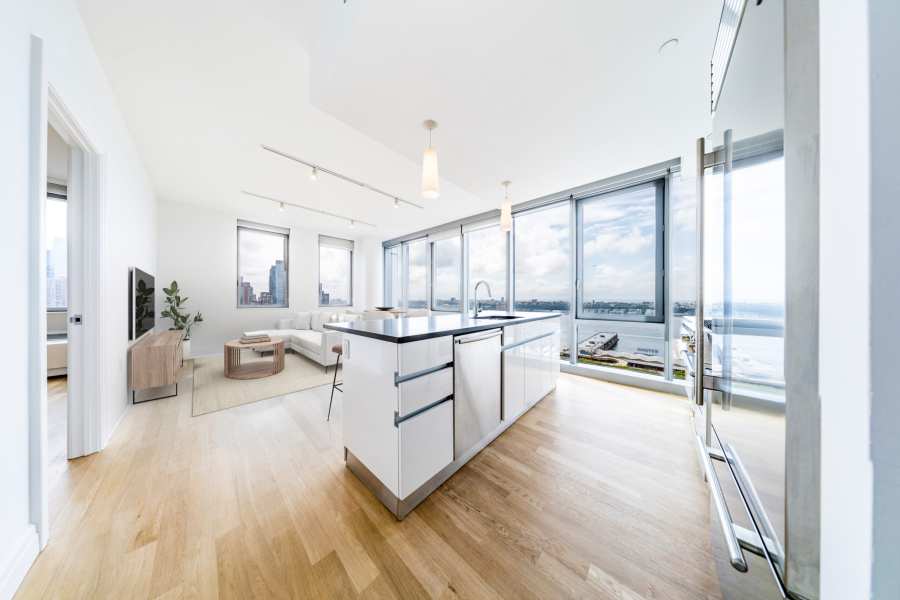 This luxury 2-bedroom 2-bathroom apartment, located in the heart of Midtown West, is a true gem. As soon as you enter, you are immediately struck by the luxurious finishes and modern design of the apartment. The spacious living room boasts floor-to-ceiling windows that offer breathtaking views of the city skyline and gorgeous water views of the Hudson River. The two bedrooms are equally impressive with two full bathrooms and ample closet space, with the primary bedroom having an additional two spacious closets and an en-suite bathroom.
